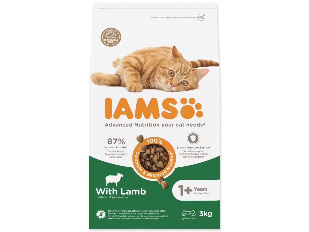 Kompletní krmivo IAMS Cat Adult Lamb pro dospělé kočky s jehněčím masem.