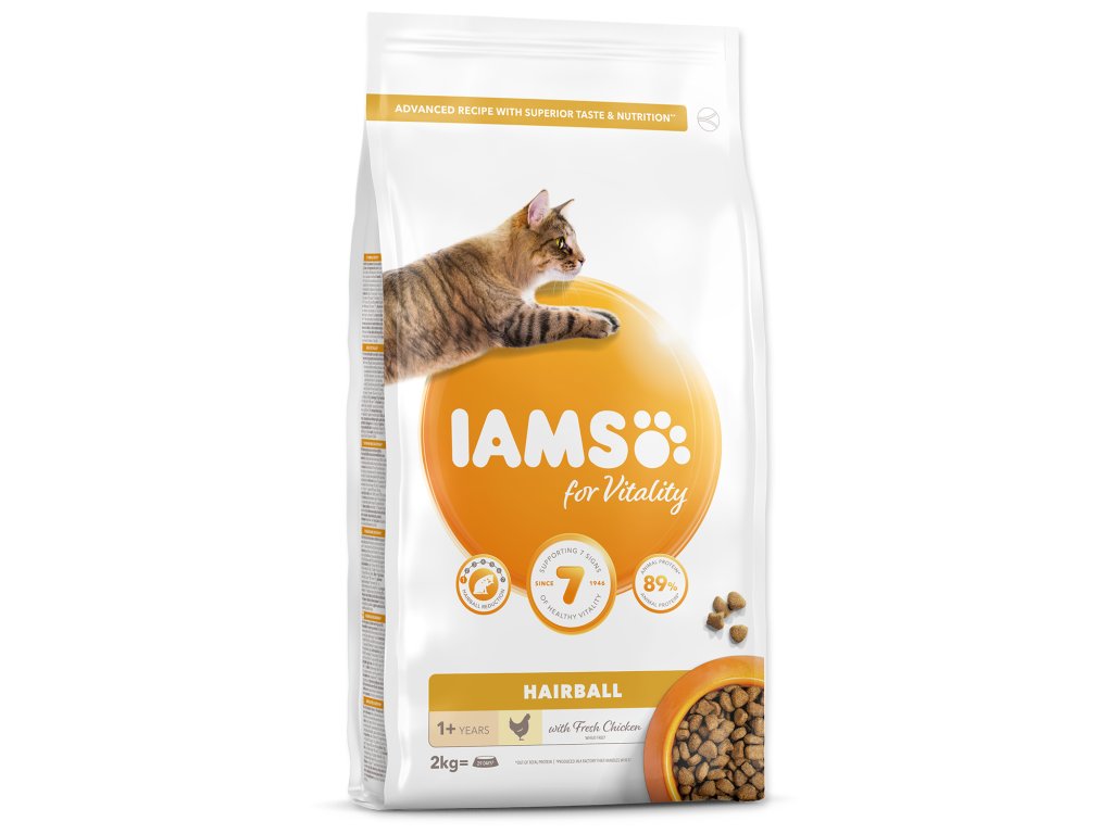 Krmivo IAMS for Vitality pro redukci chlupových bezoárů pro dospělé kočky a kočičí seniory je 100% kompletní a vyvážené, odborníky sestavené krmivo, které bude vašemu zvířeti chutnat a svědčit.